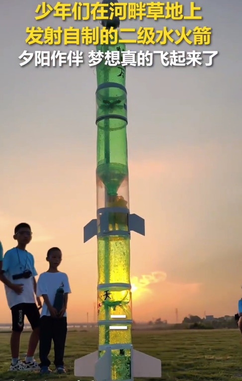 少年暑假自制二级水火箭发射成功 网友:梦想飞起来了