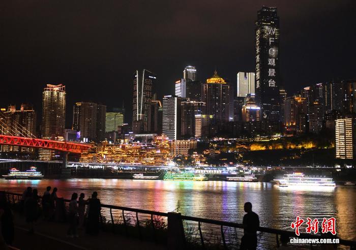 图为嘉宾欣赏重庆夜景。中新社记者 周毅 摄
