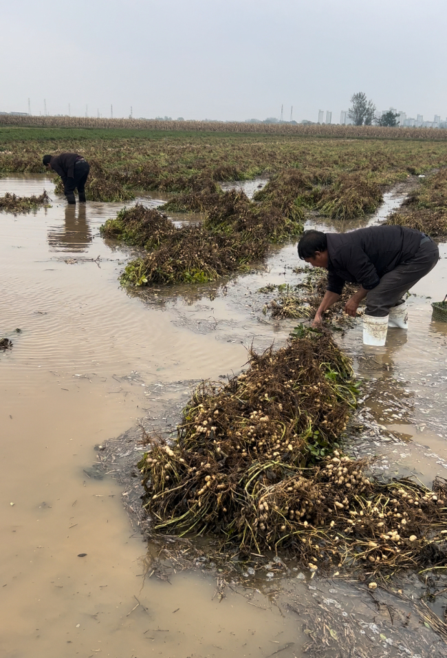 夏旱之后又秋涝,一位河南农户的花生抢收战 与时间赛跑!林涵艰难地在泥泞中薅着地里的花生。过去一个多月,她和丈夫早出晚归,希望能尽快将几十亩花生收上来,但9月接连不断的阴雨让他们一筹莫展。林涵形容这些日子,早上出门还算干净,薅到天黑,眼镜糊了,人也糊了,“干不到头,一抬头还有那么多地搁着”。有时夫妻俩相视一看,只觉对方老了十岁。