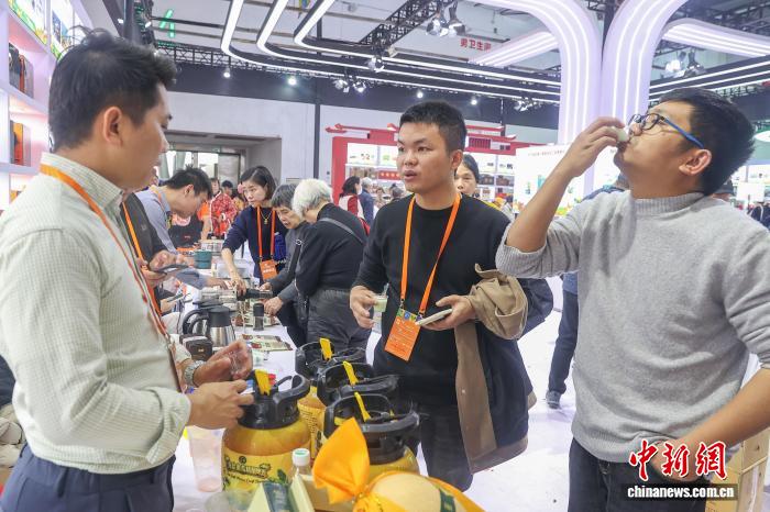 图为第七届江西农博会现场,民众在海南省展位前品尝水果味精酿啤酒。中新社记者 刘力鑫 摄