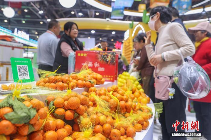 图为第七届江西农博会现场,春节临近,民众在采购各类年货农产品。中新社记者 刘力鑫 摄