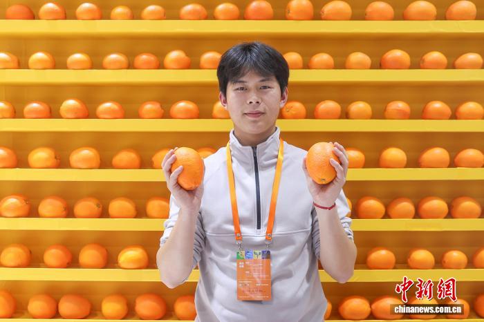 图为第七届江西农博会现场,赣州馆的工作人员展示赣南脐橙,当前正是赣南脐橙上市季节。中新社记者 刘力鑫 摄